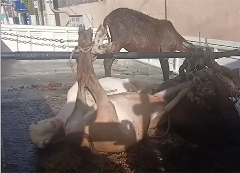 Según el reporte, los individuos fueron descubiertos por vecinos del lugar mientras cargaban los animales.