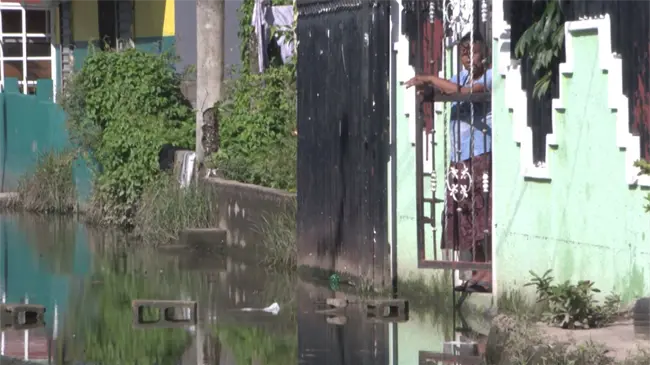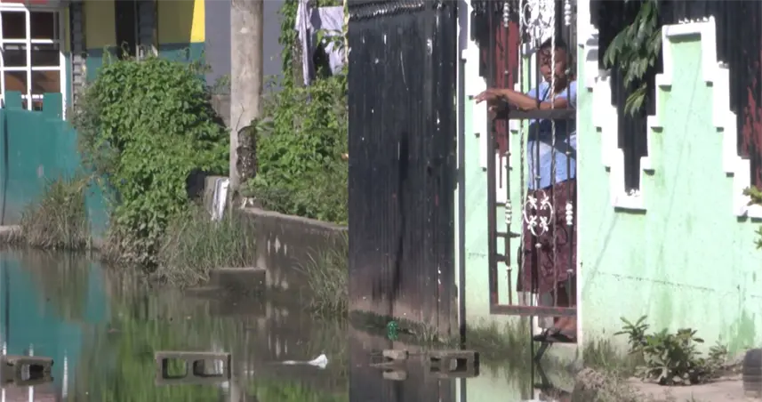 Desde las primeras horas del día, los moradores permanecían encerrados en sus casas, atrapados por el agua que cubre las calles y que, según aseguran, se acumula durante meses sin que ninguna autoridad acuda en su auxilio.