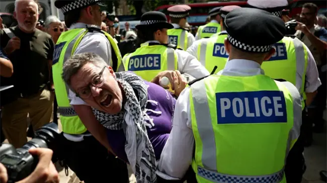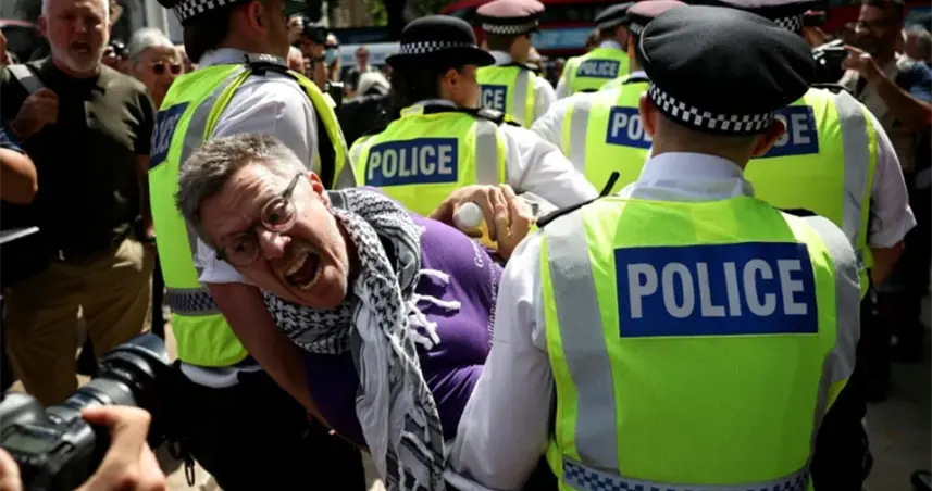 Desde la prohibición, la Policía ha detenido a más de 1.400 personas, entre ellas personas mayores y con discapacidades, muchas de las cuales participan en protestas estáticas con carteles que rezan: "Me opongo al genocidio. Apoyo a Palestine Action".