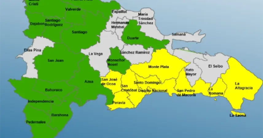 Santo Domingo.– El Centro de Operaciones de Emergencias (COE) mantiene nueve provincias en alerta amarilla y 14 en verde, debido a las lluvias que continúan afectando gran parte del territorio nacional, producto del paso de una onda tropical y la incidencia de una vaguada en los niveles altos de la atmósfera, según informó el Instituto Nacional de Meteorología (INDOMET).