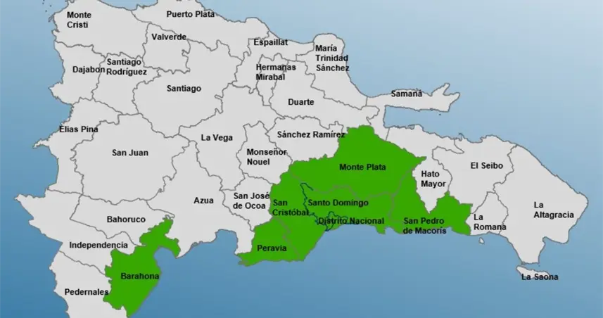 Las provincias bajo alerta verde son: Santo Domingo, San Pedro de Macorís, Monte Plata, San Cristóbal, Peravia, Barahona y el Distrito Nacional.