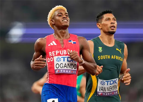 En las semifinales, con una pista mojada por la lluvia, Ogando, con su inconfundible pelo teñido, logró quedar segundo y clasificarse para una final en la que también estarán los estadounidenses Noah Lyles y Kenny Bednarek, el jamaicano Bryan Levell, el botsuano Letsile Tebogo, el británico Zharnel Hughes, el sudafricano Sinesipho Dambile y el atleta de Zimbabue Piwanashe Makarawu.