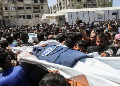 En este doble ataque han sido asesinados Hossam Al Masri (camarógrafo de la agencia de noticias Reuters), Mohamed Salama (camarógrafo de la cadena catarí Al Jazeera), Mariam Abu Daqqa (informadora de la agencia estadounidense AP), Moaz Abu Taha (reportero de la cadena estadounidense NBC) y Ahmed Abu Aziz (periodista para la Red Quds Feed).