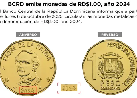 El Banco Central de la República Dominicana (BCRD) informó que a partir del lunes 6 de octubre de 2025 entrarán en circulación las monedas metálicas de un peso dominicano (RD$1.00).