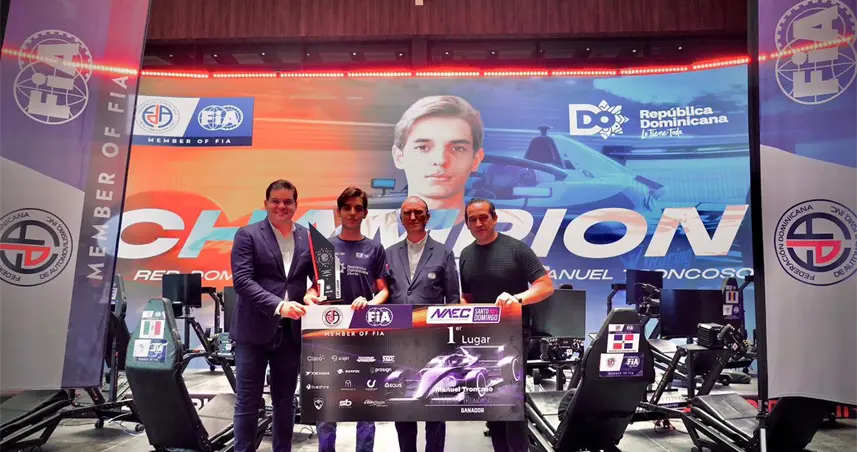 Santo Domingo.– El piloto dominicano Manuel Troncoso, miembro de la selección nacional de la Federación Dominicana de Automovilismo (FDA), dominó de manera contundente la gran final del Segundo Campeonato Norteamericano de E-Sports, celebrado de forma presencial en las modernas instalaciones de Cleaner Studio, con la participación de 12 competidores de distintas naciones.