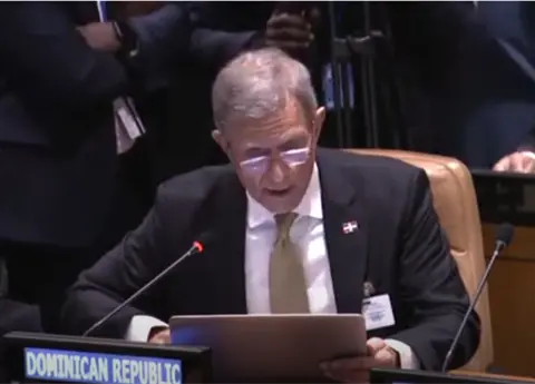 - En esta reunión realizada en el marco de la 80ª Asamblea General de las Naciones Unidas, el ministro Álvarez estuvo acompañado por el representante permanente dominicano ante la ONU, embajador Wellington Bencosme.