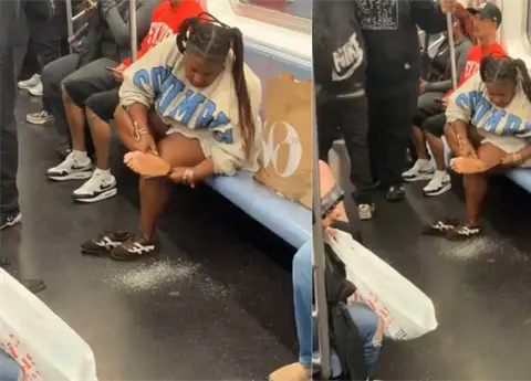 Captan a mujer exfoliándose el pie en pleno metro de Nueva York