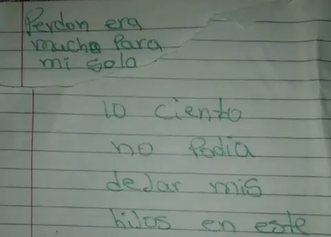 "Perdón, era mucho para mí sola. Lo siento, no podía dejar a mis hijos en este mundo tan cruel", escribió Jiménez Valdez en la misiva encontrada tras el hecho.