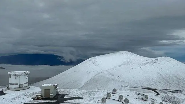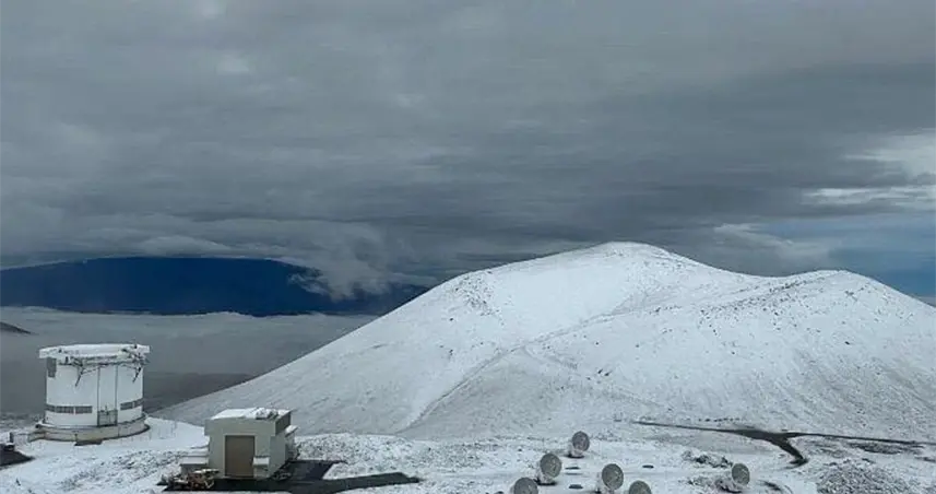 El Servicio Meteorológico Nacional (NWS, en inglés) registró caída de más de 10 centímetros (4 pulgadas) de nieve en las altas cumbres volcánicas del Mauna Loa y Mauna Kea en la Isla Grande.