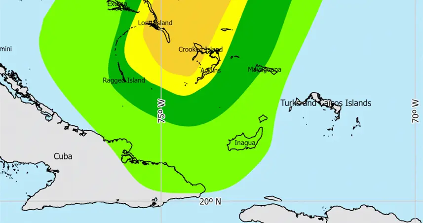 El organismo explicó que Melissa se encuentra a unos 345 kilómetros al noreste del centro de las Bahamas, moviéndose hacia el norte-noreste a unos 33 km/h, con vientos máximos sostenidos de 165 km/h y ráfagas superiores.