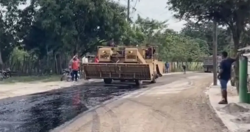 - En el lugar estuvieron presentes técnicos, contratistas y el alcalde de Manuel Bueno, quienes supervisaron el inicio de la imprimación, fase previa al asfaltado definitivo.