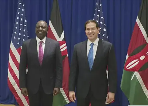 - La reunión también abordó la cooperación bilateral en materia de seguridad y el rol clave de Kenia en la protección de la región africana. Asimismo, Rubio y Ruto revisaron oportunidades para fortalecer la inversión comercial estadounidense en sectores estratégicos de Kenia.