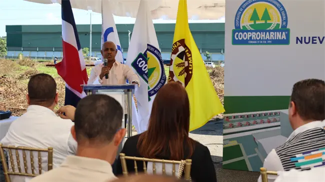 Durante el acto, también ofrecieron palabras el presidente de la Comisión DISDO-Cooproharina, Héctor Delgado, y el gerente general de la empresa Decker Soluciones SRL, Richard Despradel, responsable de la construcción de los silos del nuevo molino.