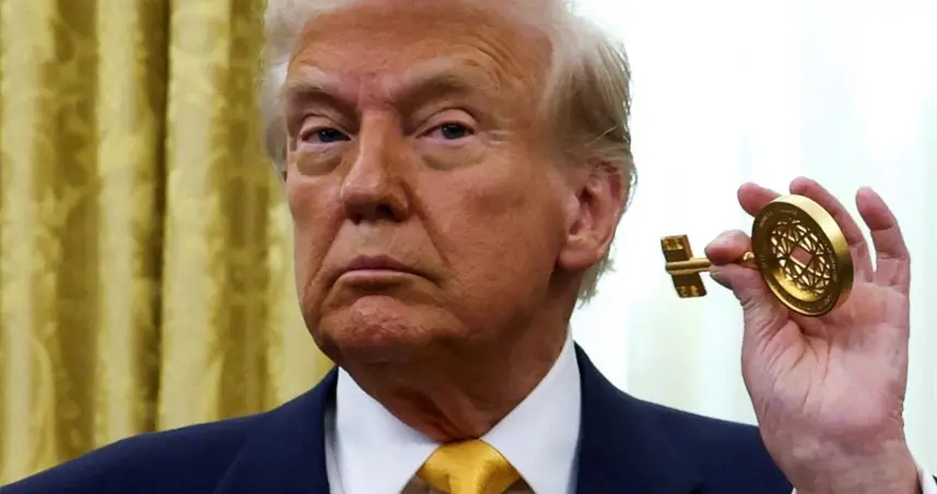 Redacción Internacional.– El presidente estadounidense, Donald Trump, ha añadido un nuevo aplique dorado y un cartel a la salida del Despacho Oval, que se suman a los numerosos cambios que está efectuando en la decoración y estructura de la Casa Blanca desde su vuelta al poder el pasado enero.