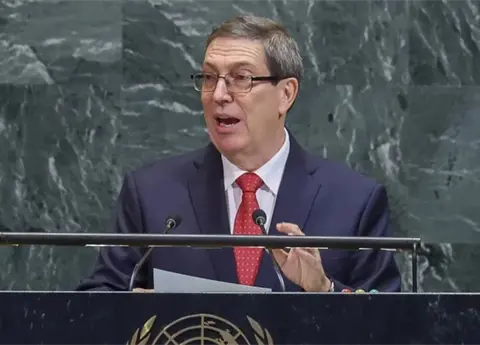 El canciller comenzó su intervención en el 80 período de sesiones de la Asamblea General expresando "la más firme solidaridad de Cuba con el pueblo palestino y con su justa causa a favor de la libertad, la independencia y el fin de la ocupación sionista".