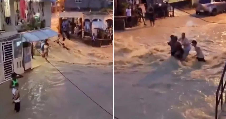 Santo Domingo.– Una mujer fue arrastrada por un fuerte caudal mientras se dirigía con su hijo a socorrer a sus familiares tras la inundación de su vivienda. El hecho ocurrió en un barrio de Santo Domingo, afectado en los últimos días por intensas lluvias y ráfagas de viento debido a la tormenta tropical Melissa.