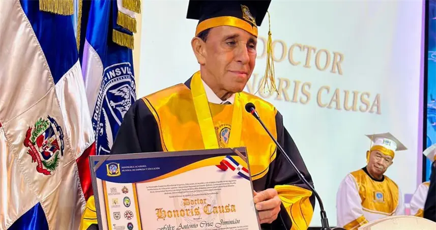 Santo Domingo.– El reconocido filántropo y médico dominicano Dr. Cruz Jiminián fue investido este sábado con el título de Doctor Honoris Causa por un conjunto de prestigiosas universidades internacionales, en reconocimiento a sus extraordinarios aportes humanitarios en favor de las personas más necesitadas.