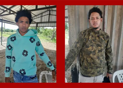 Los detenidos fueron identificados como Alexander Adames y Alfredo Montero, quienes se desplazaban en un Toyota Corolla gris, placa A867845. La detención se produjo en un puesto de chequeo militar ubicado en la comunidad de Pedro Corto, en la provincia San Juan de la Maguana.
