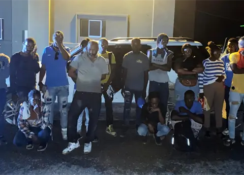 En el interior del vehículo se encontraban 10 hombres, cuatro mujeres y cuatro menores de edad, los cuales, junto al detenido, fueron trasladados a la Fortaleza San Fernando del ERD, para ser puestos a disposición del Ministerio Público y de las autoridades competentes.