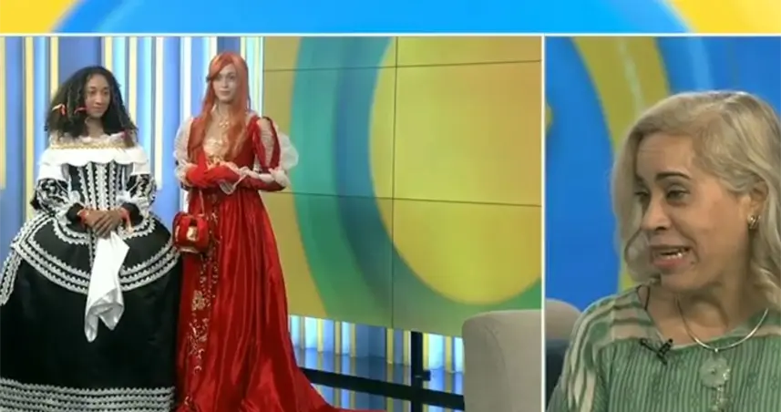 Durante la entrevista también se presentó un traje que, según Ana María Cordero, "está representando a Lucrecia Borgia", elaborado por la diseñadora Loida Segura.