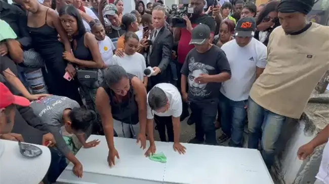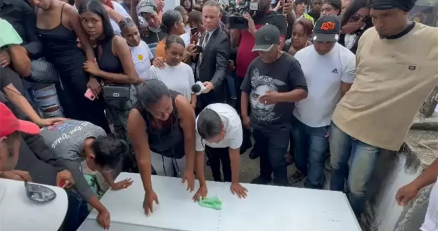 La comunidad del sector Brisas del Este se mostró consternada y acompañó el cortejo, manifestando su apoyo a la familia y su exigencia de justicia.