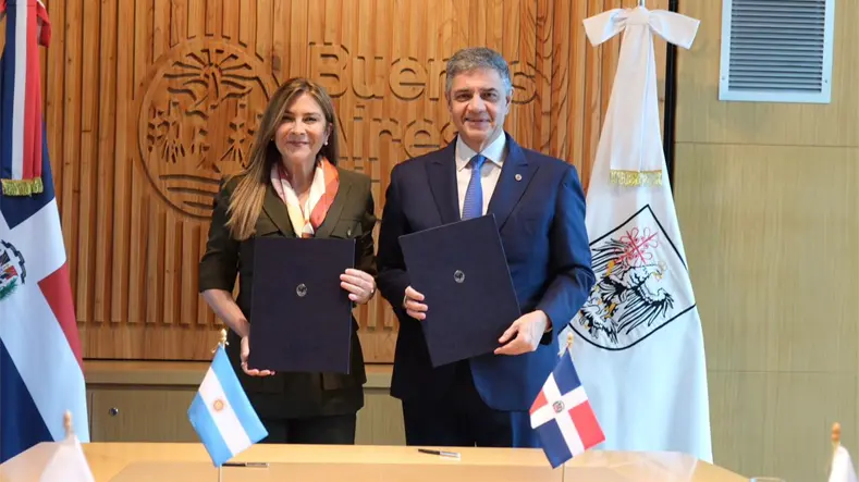 Buenos Aires – Carolina Mejía y Jorge Macri firmaron este miércoles un convenio de cooperación entre Santo Domingo y Buenos Aires para fortalecer la relación institucional y la cooperación técnica entre ambas ciudades, fomentando el intercambio de experiencias, conocimientos y buenas prácticas en ámbitos de gestión local y desarrollo urbano sostenible.