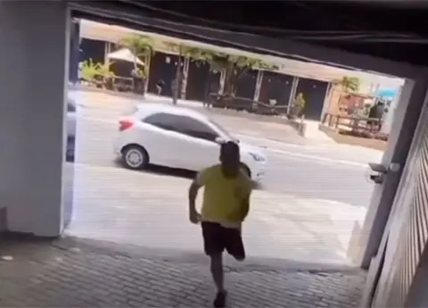 La escena del hombre desesperado, que tomó un vehículo hasta el lugar donde fue su mujer, quedó grabada por las cámaras de seguridad del hotel de Brasil, según las redes sociales.