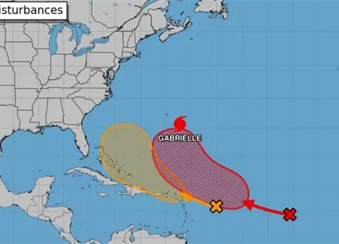 De acuerdo con el NHC, se espera que Gabrielle mantenga su desplazamiento hacia el norte durante este lunes y que el martes gire con mayor velocidad hacia el noreste o este-noreste.