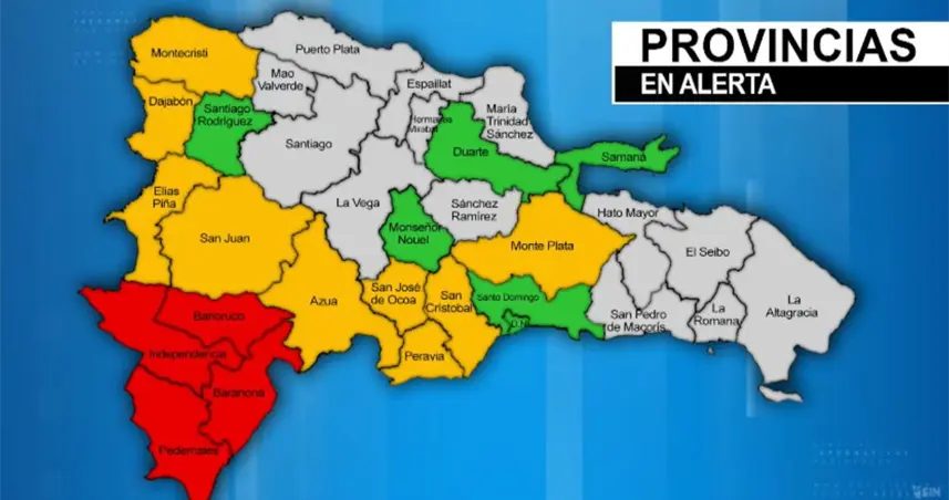 Durante la tarde y primeras horas de la noche, las precipitaciones se extenderán hacia el sureste, afectando provincias como Gran Santo Domingo, Monte Plata, San Cristóbal, San Pedro de Macorís, Hato Mayor, El Seibo y María Trinidad Sánchez, aunque con menor intensidad.