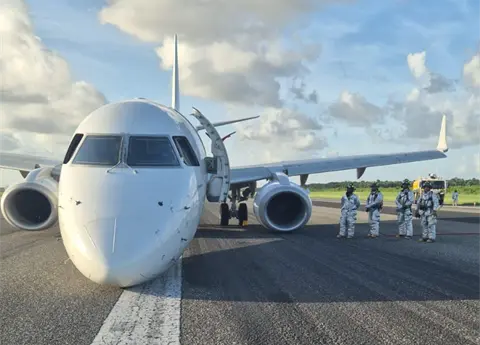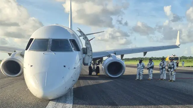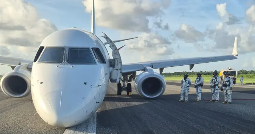 Falla técnica en tren de aterrizaje delantero provoca aterrizaje de emergencia de aeronave Embraer 190 en Las Américas
