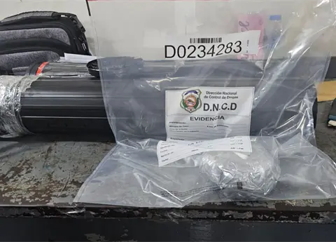 En una segunda intervención, realizada en el Inposdom, las unidades de la DNCD inspeccionaron un paquete sospechoso. En su interior, hallaron un porta plano con una porción de cocaína oculta, cuyo peso preliminar es de 385 gramos.