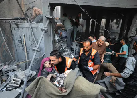 Además, los bombardeos israelíes aéreos, marítimos y terrestres contra edificios y tiendas provocaron una avalancha de heridos, con más de 150 pacientes ingresados en este hospital desde distintos puntos de la ciudad.