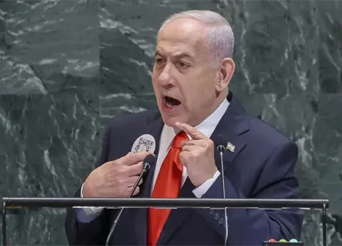 El primer ministro fue muy crítico con los países que han reconocido en los últimos días el Estado de Palestina, entre los que mencionó a Francia, Reino Unido, Australia y Canadá, afirmando que con ello "recompensan a los más antisemitas del mundo" y denunciando una guerra legal y política contra Israel por parte de "líderes débiles y necesitados".