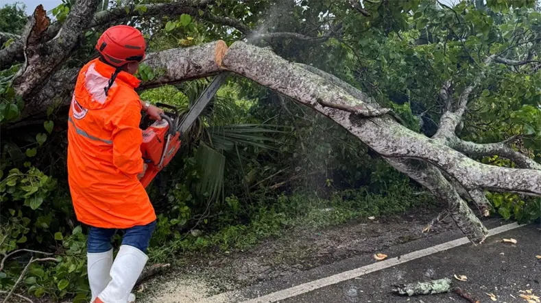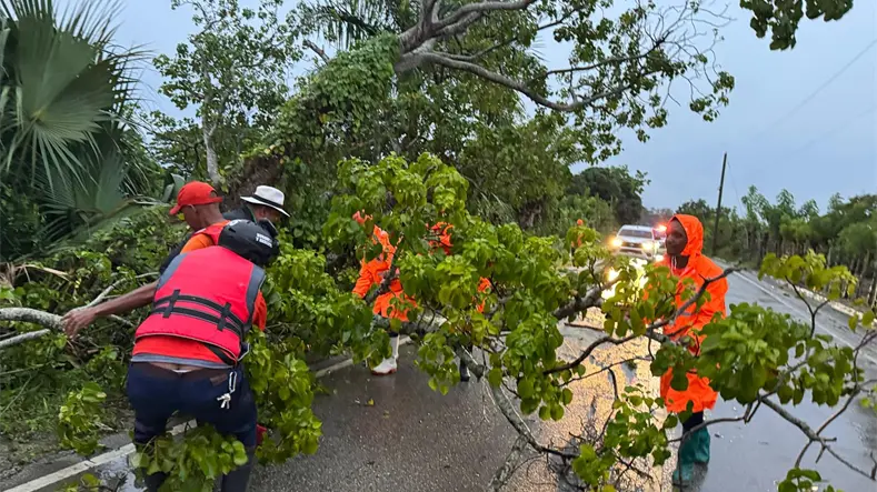 En La Altagracia, brigadas despejaron carreteras bloqueadas por árboles caídos.