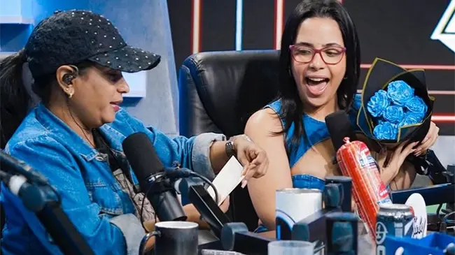 Luinny Corporán sorprende con flores azules a programas de televisión y radio en víspera del estreno de “La Mansión de Luinny”