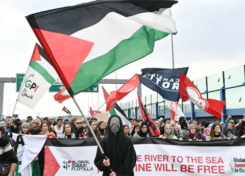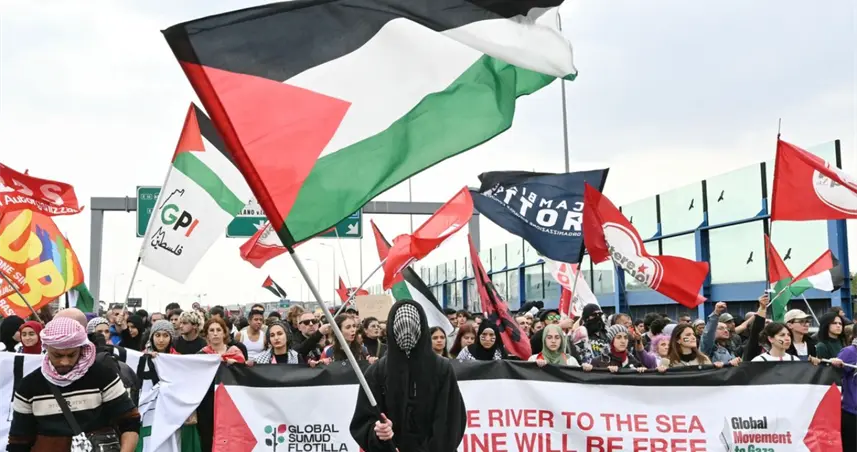 La protesta también coincidió con la salida de 26 ciudadanos italianos de la Global Sumud Flotilla desde Israel, luego de firmar su deportación voluntaria. Otros quince activistas decidieron no firmar y esperarán una resolución judicial para su expulsión.
