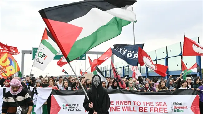 Manifestación multitudinaria toma Roma en apoyo a Gaza y la Flotilla