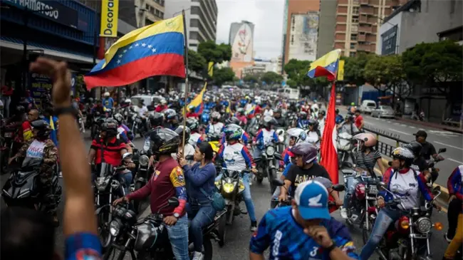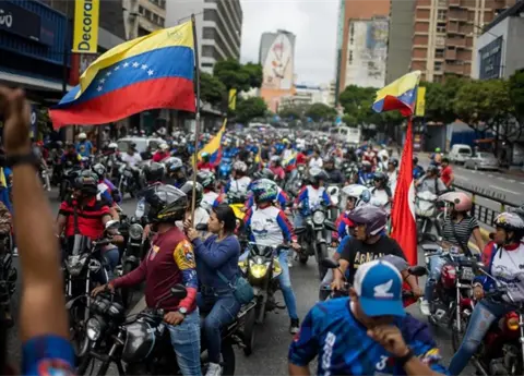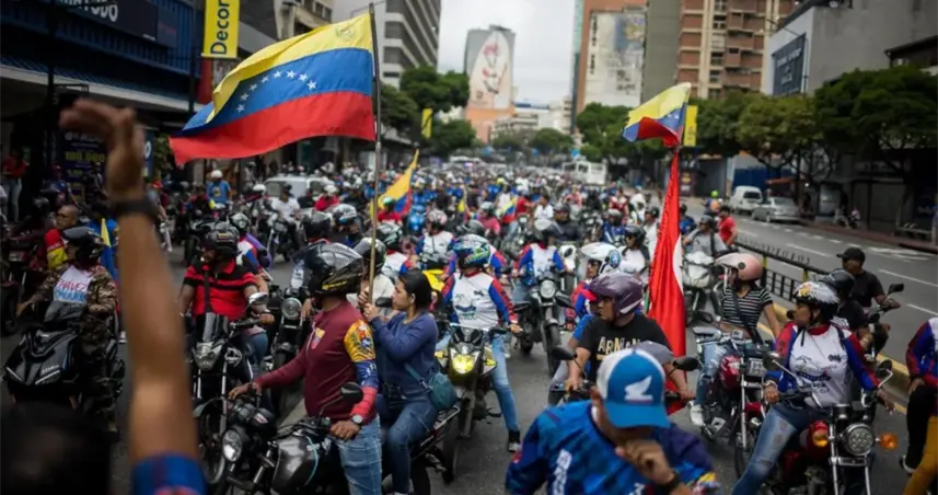 Distintos grupos simpatizantes del chavismo, milicianos y miembros de instituciones del Estado, a pie o en vehículos, salieron de varias zonas de la capital venezolana para encontrarse en la avenida Bolívar