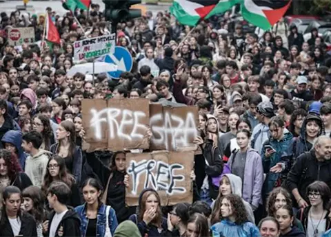 Miles de personas protestan en Roma y otras ciudades por la interceptación de la Flotilla