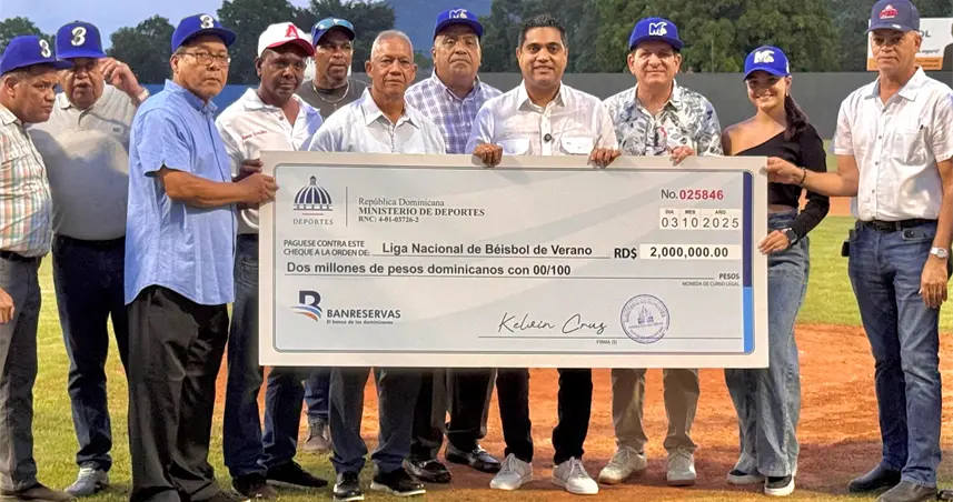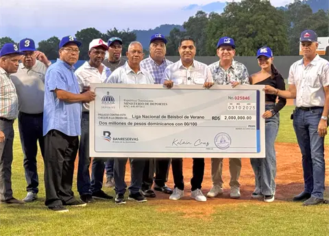 El ministro de Deportes, Kelvin Cruz, entregó este viernes un aporte de dos millones de pesos a la Liga de Béisbol de Verano, que organiza la Federación Dominicana de Béisbol (Fedom).