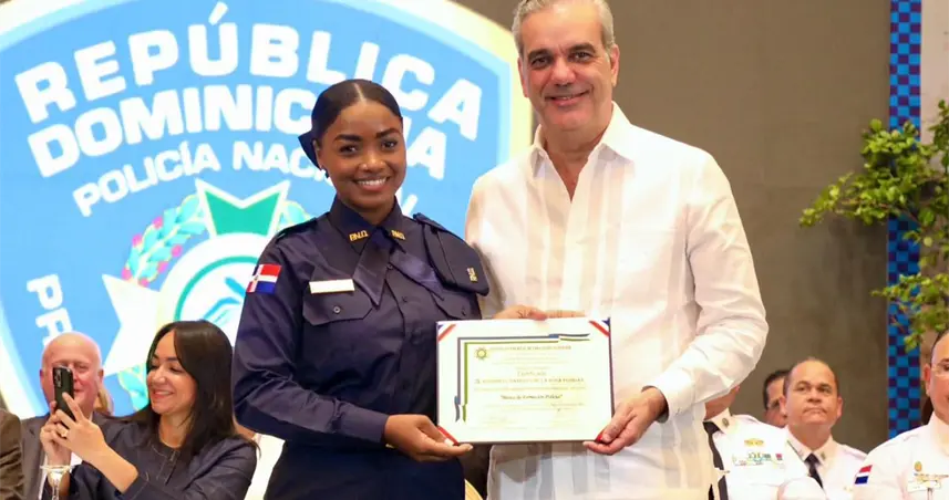 En nombre de los graduandos, la raso Arianna Abigaíl Montero agradeció al presidente y a las autoridades policiales por su apoyo, reafirmando el compromiso de servir con integridad, disciplina y vocación al pueblo dominicano.