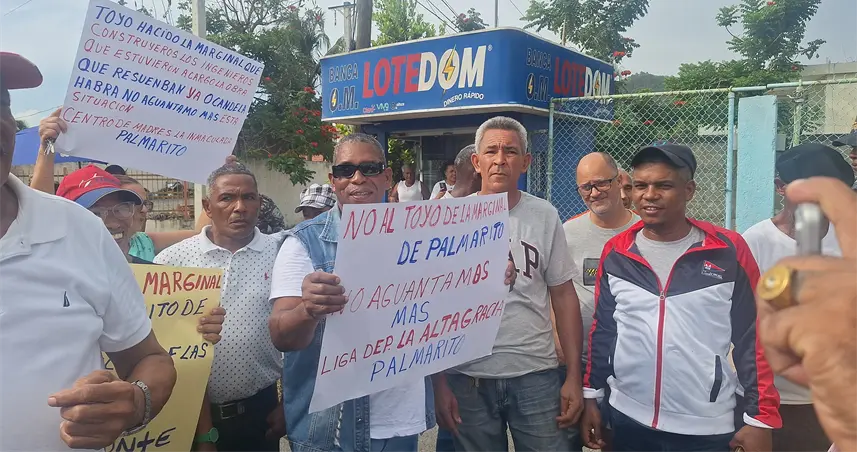 Grupos populares y dirigentes comunitarios del sector Palmarito realizaron este viernes una protesta pacífica en las inmediaciones del kilómetro 82 y medio de la autopista Duarte, para exigir la terminación de la marginal que conecta con los sectores La Palma, Palmarito y Las Torres, en el municipio de Bonao.