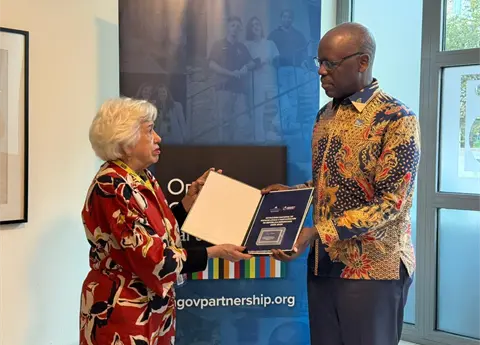 La delegación dominicana que encabeza la directora General de Ética e Integridad Gubernamental, Milagros Ortiz Bosch entregó oficialmente la Estrategia al CEO de la OGP, Aidan Eyakuze, quien reconoció el liderazgo del país e invitó a RD a coliderar el Laboratorio de Espacio Cívico.