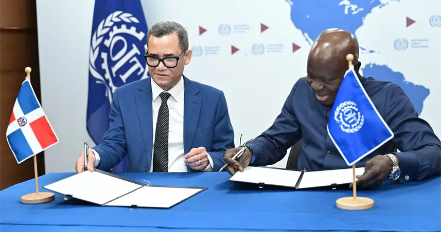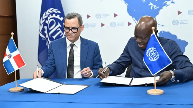 Santo Domingo.– En el marco de la 20ª Reunión Regional Americana de la Organización Internacional del Trabajo (OIT), celebrada en Punta Cana, el ministro de Trabajo de la República Dominicana, Eddy Olivares, entregó al director general del organismo, Gilbert Houngbo, el instrumento de ratificación del Convenio 156 de la OIT, sobre los trabajadores con responsabilidades familiares.