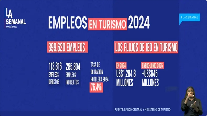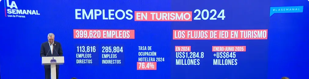 El sector turístico, vital para la economía dominicana, generó un total de 399,620 empleos en 2024. De estos, 113,816 son empleos directos y 285,804 son empleos indirectos, con una tasa de ocupación hotelera proyectada del 76.4%.