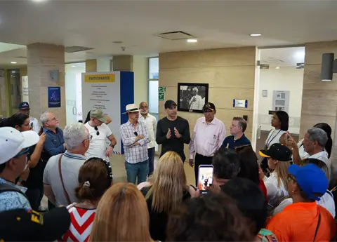 A su llegada, el ministro fue recibido por una comisión encabezada por el viceministro de Identidad Cultural y Ciudadanía, Pastor de Moya; la viceministra para la Descentralización y Coordinación Territorial, Rossina Guerrero Heredia; el viceministro de Creatividad y Formación Artística, Amaury Sánchez; la viceministra de Industrias Culturales, Alicia Baroni; el viceministro de Patrimonio Cutural, Gamal Michelén y el viceministro de Desarrollo, Innovación e Investigación Cultural, Luis R. Santos.
