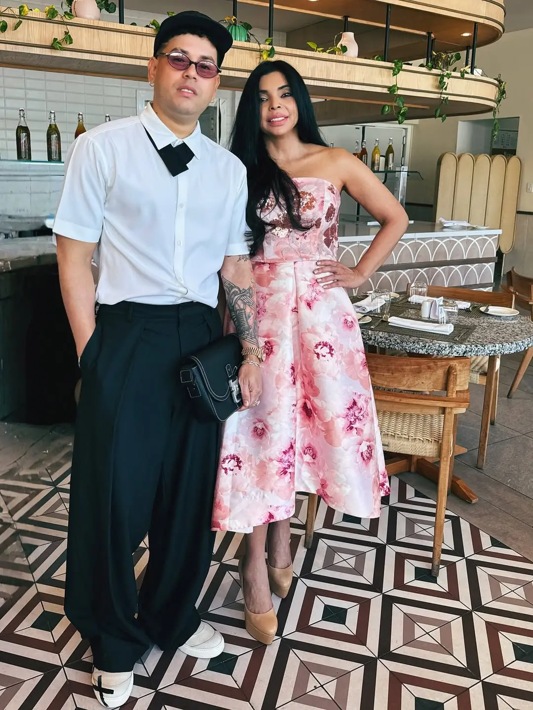 El cantautor Shadow Blow muestra su agradecimiento a Yeni Berenice por su participación en el desfile de inclusión de LibertyRD en RD Fashion Week 2025.
