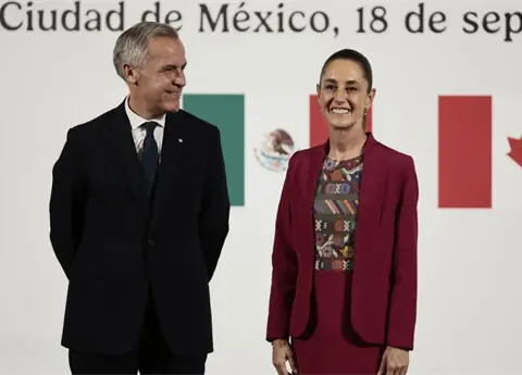 En la víspera, Sheinbaum y Carney acordaron un "plan de acción" para fortalecer la relación bilateral, en medio de la incertidumbre en la antesala de la revisión del tratado comercial entre México, Estados Unidos y Canadá (T-MEC), prevista para 2026.