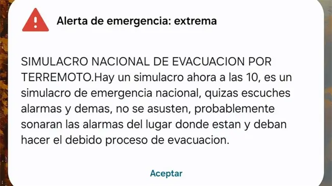 Desde temprano, los ciudadanos recibieron una alerta de emergencia extrema en sus teléfonos móviles, informando sobre la realización del simulacro y pidiendo mantener la calma ante el sonido de las alarmas.