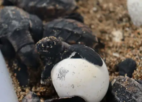 Eclosiona el primer nido de tortugas verdes en Playa Güibia